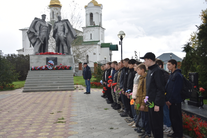 Перед тем, как отправиться в расположение лагеря для учащихся состоялся митинг у памятника Солдату и Матросу.
