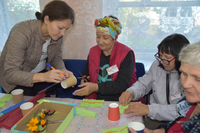 Поднять настроение присутствующим помогли песни, в исполнении местных артистов Анастасии Турбеевой и Ольгой Алтуфьевой. Мастер-класс по изготовлению корзинки из гофрированной бумаги провела библиотекарь Анна Жилина.