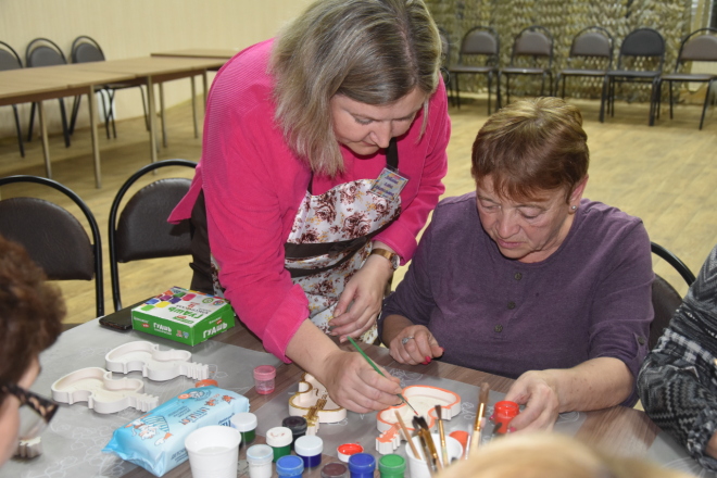 – Я постоянная участница таких заседаний, – говорит Надежда Борисовна Колосова. – У меня уже есть несколько видов гипсовых фигур, которые я сама разукрасила. Мне очень нравится. Здесь мы общаемся, делимся своими предпочтениями, раскрываем таланты.