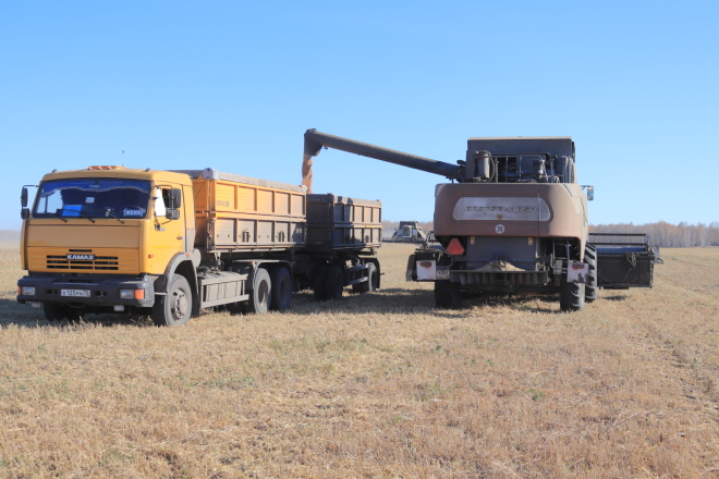 Остаётся обмолотить порядка 200 гектаров пшеницы в агрофирме "Новоселезнёво" и 30 га рапса в одном из крестьянских фермерских хозяйств.