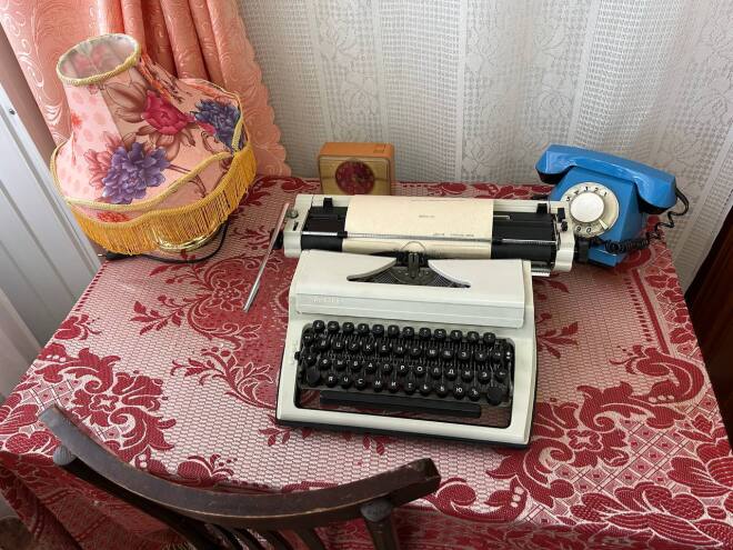 На выставке есть и настенный ковёр, и небольшой диванчик, и тумбочка, на которой – проигрыватель с пластинкой. Всё в рабочем состоянии. Среди экспонатов выставки – различные фотоаппараты, очень популярные во времена СССР - "Зенит", "Фет", чуть позже появился и "Полароид". Тем, кто занимался фотографией, занятно будет посмотреть на то, как проявлялась плёнка, сушилась, как делались фотографии.