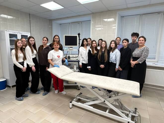 12 ноября учащиеся медицинского класса побывали на экскурсии в кабинете областной больницы №14 имени В. Шанаурина, где проводятся эндоскопические обследования. Здесь ребят встретила медицинская сестра кабинета Наталья Плесовских.