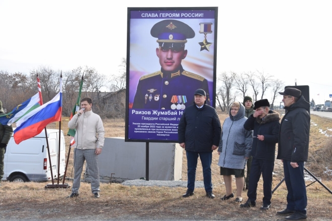 В д. Ельцово торжественно открыли памятный знак Герою России Жумабаю Раизову