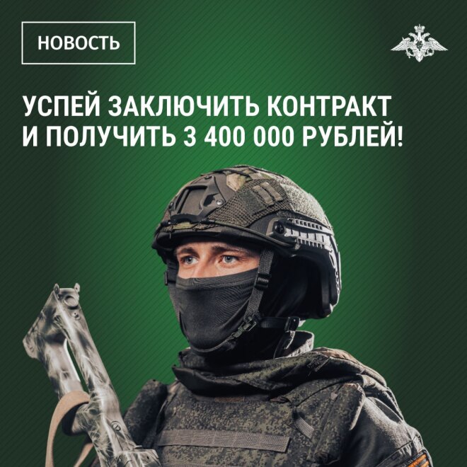 Граждане, которые вступят в ряды ВС РФ в военкоматах региона либо в пункте отбора на военную службу по контракту города Тюмени (ул. Республики, 2/1), получат самую большую выплату в стране - 3 400 000 рублей.