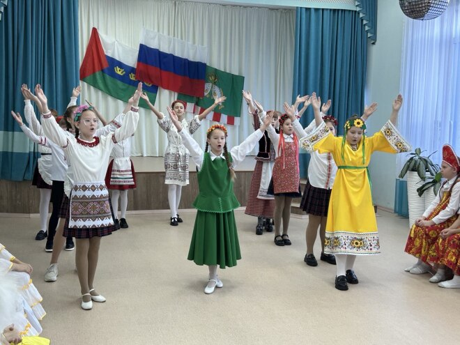 Первую часть фестиваляпровела педагог-организатор школы Татьяна Петровская. Учащиеся представили самобытные культуры четырёх национальностей: белорусов, казахов, якутов и русских. Ребята с помощью классных руководителей Ольги Иоч (4 "А" класс), Валентины Асташковой (4 "Б" класс), Натальи Менщиковой (4 "В" класс), Натальи Асташковой (Яровская школа) очень хорошо подготовились к выступлению. Они выучили стихотворения о выбранной национальности, спели национальные песни, исполнили танцы. Учащиеся каждого класса были одеты в соответствующие костюмы.