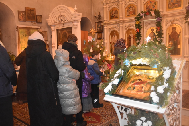 Миллионы православных отмечают сегодня Рождество Христово. Вечером 6 января в Сочельник в храме Святителя и Чудотворца Николая прошла Рождественская вечерня. Праздничную службу совершил настоятель храма иерей Вадим (Овчинников). В церкви всё было украшено еловыми гирляндами и яркими игрушками.