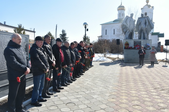 Затем собравшиеся почтили память павших товарищей минутой молчания и возложили цветы к памятнику.