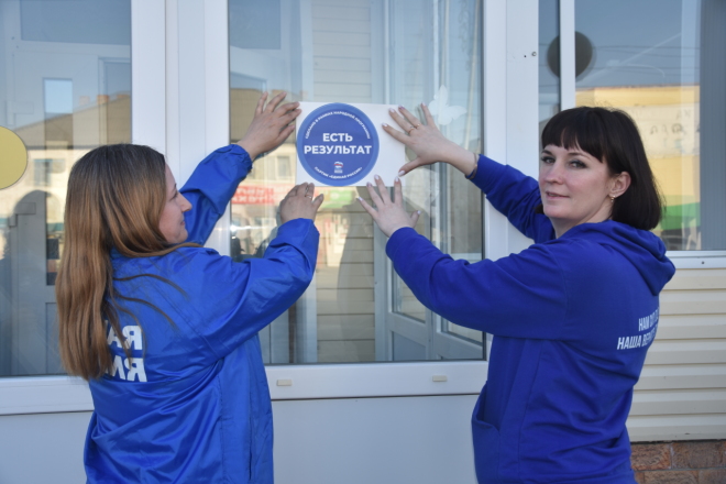 Участники Народной комиссии, посетившие центр развития детей, по достоинству оценили обновлённое учреждение и в подтверждении качества наклеили на стекло на входе в центр стикер "Есть результат".